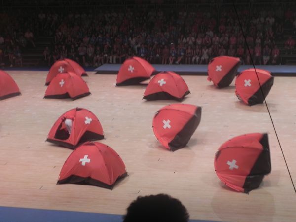 Die Gross-Gruppenvorführung im Olympischen Stadion war ein Genuss. Hier boten die verschiedensten Länder der Welt gute bis hochstehende Gross-Darbietungen. Die Schweizer-Vorführung war der Höhepunkt vom Programm.