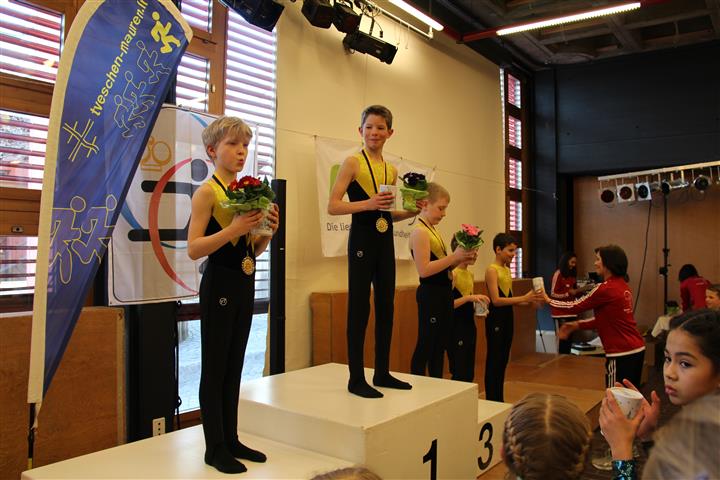 Alle Turner starteten nochmals in der gleichen Kategorie wie im letzten Jahr. Schon beim Einturnen bemerkten die Turner, dass sie die Medaillenplätze heute unter sich ausmachen würden. War der KTV Oberriet bei den Knaben leider der einzig teilnehmende Verein. Dieser Umstand hielt die Turner aber nicht davon ab, an jedem Gerät ihr bestes Können zu präsentieren. Konzentriert gingen sie an den Geräten Boden, Barren, Reck, Sprung und Ring ans Werk. Sie turnten einen ansprechenden Wettkampf und wurden von den zahlreich mitgereisten Eltern und Fans angefeuert. Bei der anschliessenden Rangverkündigung konnten sie Medaillen und tolle Preise entgegennehmen. Besonders zu erwähnen sind hier die vier Kategoriensieger: K1 Joris Hanselmann, K2 Jonas Tiefenauer, K3 Elia Baumgartner, K4 Simon Thür.