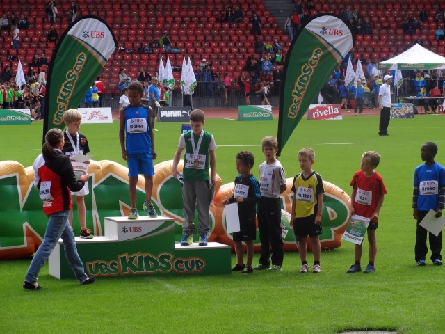 Am Kantonalfinal vor zwei Wochen qualifizierten sich die beiden Athleten als Sieger in ihrer Kategorie für diesen Anlass. Am UBS Kids Cup werden jeweils die drei Disziplinen Sprint 60m, Weitsprung und Ballwurf bestritten. Unter professioneler Leitung werden die Teilnehmer den ganzen Wettkampf über betreut. Ein besonderes Highlight ist sicher der 60m Lauf. Wie bei den Profis werden die Athleten auf den Bahnen einzeln vorgestellt und gefilmt. Mauro konnte sogar seinen Lauf gewinnen und Karim wurde bei seinem Lauf dritter.