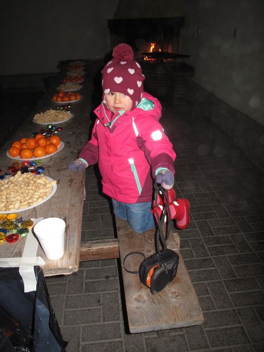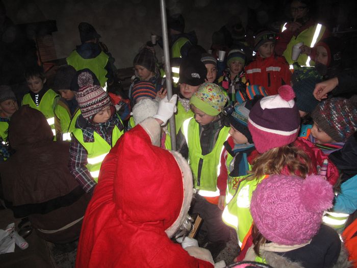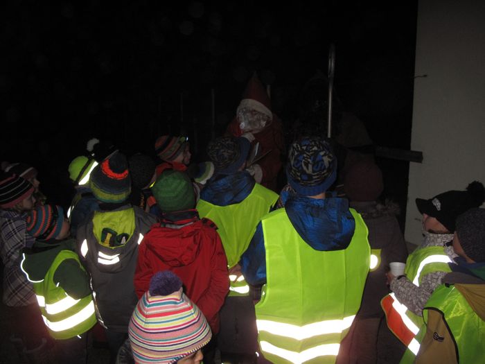 Pünktlich um 17.30Uhr marschierten die Jugikinder in Zweierkolonnen los. Der Spaziergang dauerte gegen 20 Minuten. Danach wurden die Kinder bei der Reithütte mit Schoggi, Mandarinli, Nüssli und heissem Punsch empfangen. Nachdem alle Kinder verpflegt waren, wurden sie langsam ungeduldig. Alle warteten auf die Ankunft des Samichlaus und des Schmutzli.Als die zwei Herren endlich erschienen, gaben die Kinder die einstudierten Sprüchlein zum Besten.