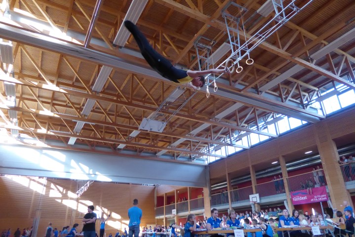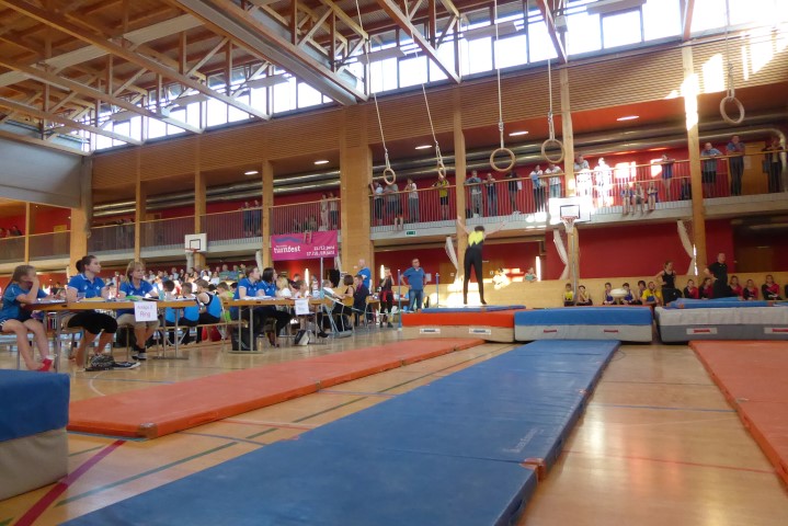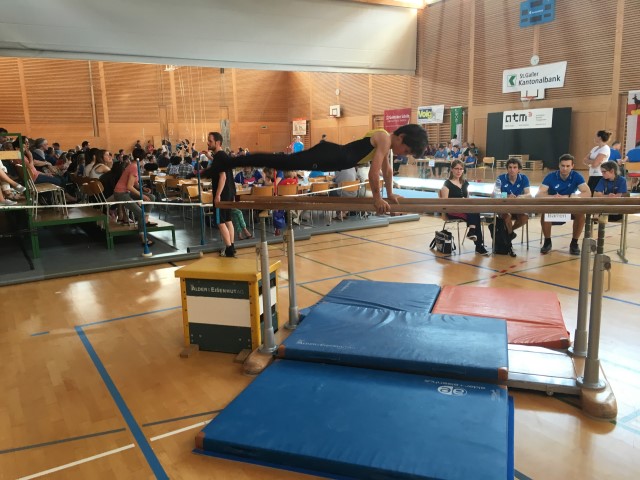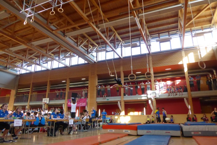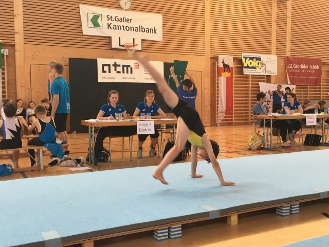 Der Wettkampf war gleichzeitig auch der Qualifikationswettkampf für die Kantonalmeisterschaft. Diese findet am 03. + 04. Septemper in der Bildstöcklihalle in Oberriet statt und wird vom STV Kriessern organisiert. Vor dem Mittag starteten Jasmin und Alina in der Kategorie 3 und Simona in der Kategorie 4. In einem sehr starken Turnerinnenfeld konnten sie leider keine Auszeichnungen erturnen.