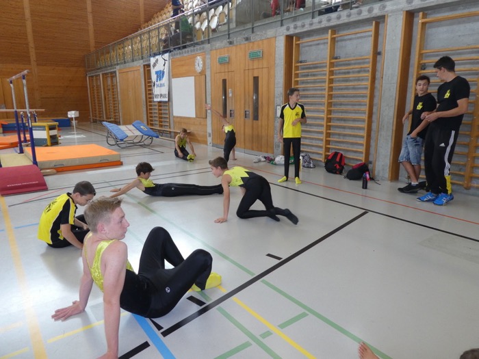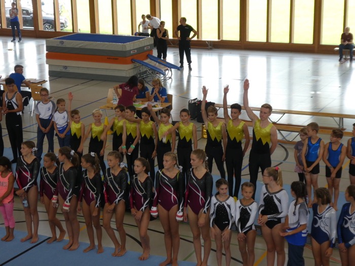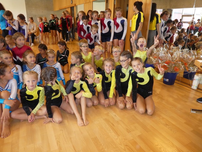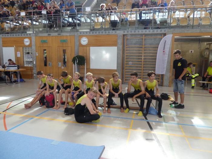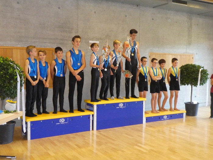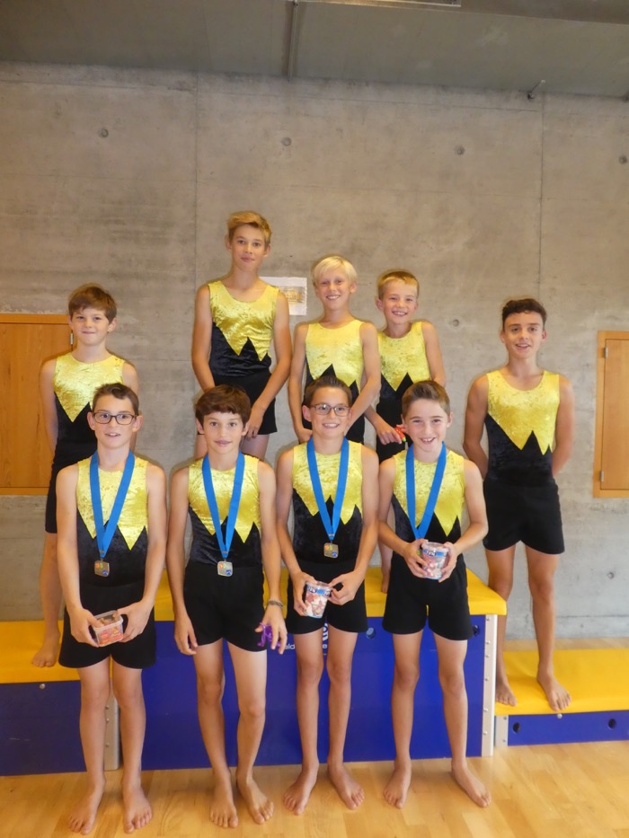Frühmorgens starteten das K1-Team der Knaben und das K1- und K2-Team der Mädchen top motiviert in den Wettkampf. Mit sauberen Übungen und der besonders hohen Bodennote 9.50 von Romina platzierten sich Jessy, Anna, Romina und Ilona auf den guten 9.Rang von 27 gestarteten K1-Mädchengruppen. Das K1-Knabenteam (Mischa, Louis, Simon und Samuel) legte einen drauf, mit einigen Noten über 9 und sicherten den ersten Podestplatz, den hervorragenden 3.Rang in der gemischten Kategorie AJ 2. In derselben Kategorie gewertet, erreichten Olivia, Stella, Sarah und Enja den 17.Rang von 22 insgesamt gestarteten.