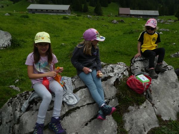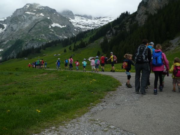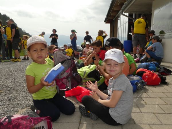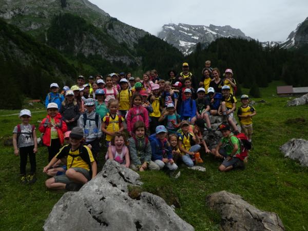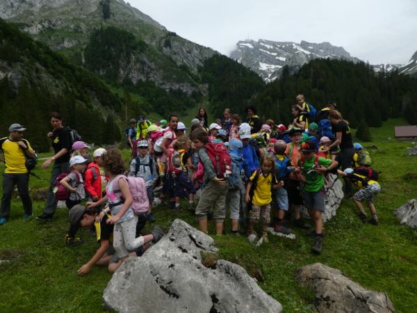 Dieser führte mit Bahn und Postauto nach Wildhaus, von wo aus der Anstieg ins Gampüt in Angriff genommen wurde. Die Kindergärtner durften diese Etappe mit der Bahn absolvieren, alle anderen hatten das Vergnügen das Wettrennen gegen die Seilbahn per Fuss anzutreten. Sieger waren ein paar starke Läufer!!
