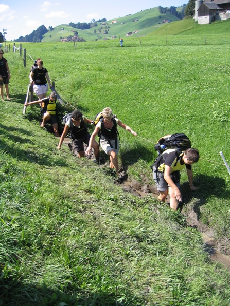 Zur Entspannung der Nerven und Muskeln genossen wir den letzten Abschnitt zu Fuss auf dem Barfussweg. Die eint oder andere liess sich auch ein Schlammbad nicht entgehen – teilweise zwar eher unfreiwillig, aber für den Rest der Teilnehmer sehr amüsant.