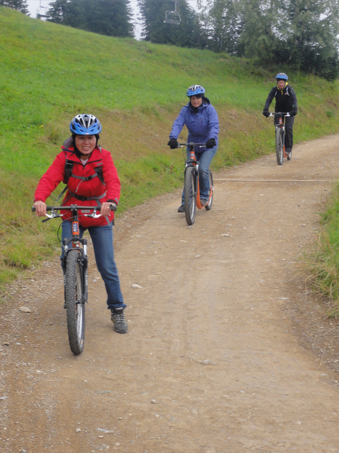 um gemeinsam zwei geniale Tage zu verbringen. Die kühle Bergluft empfing die Damen am Samstag in der Lenzerheide. Ein gemütliches Mittagessen an der Grillstelle beim Heidsee stärkte die Frauen nach einer kurzen Wanderung entlang des Globiweges. Dannach reiste die fröhliche Gruppe weiter nach Savognin, wo am Sonntag nochmals voller Körpereinsatz gefragt war. Die Funsportgeräte von Cube Active wurden ausgiebig getestet, wodurch manch eine gar das Mittagessen vergass. Erschöpft aber zufrieden kam die kleine Gruppe am Sonntagabend wieder in Oberriet an. Es war ein gelungener Ausflug, einen herzlichen Dank an die Oranisatorinnen.