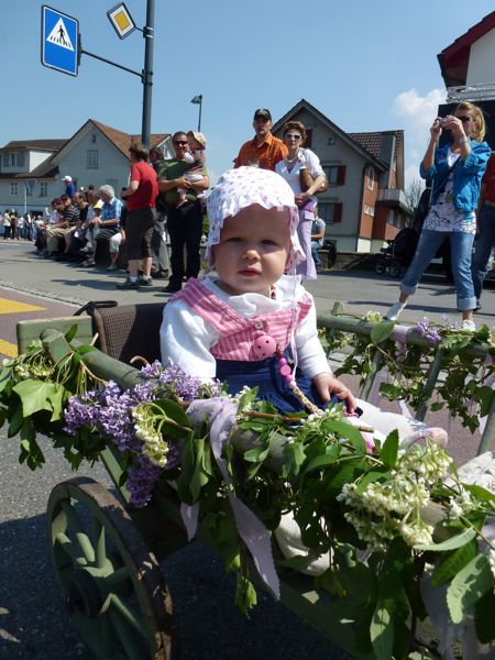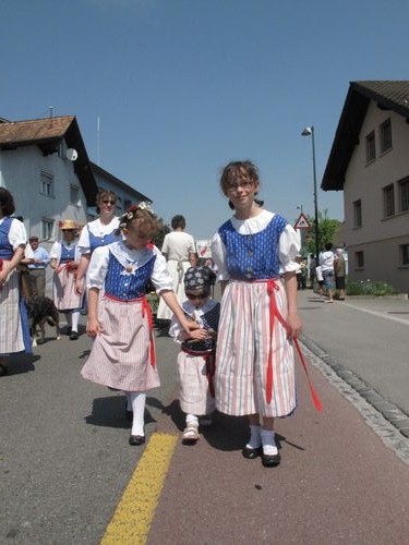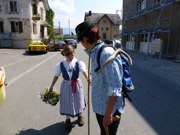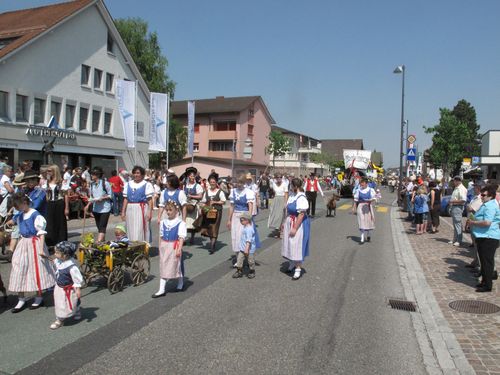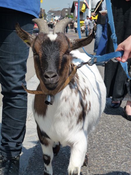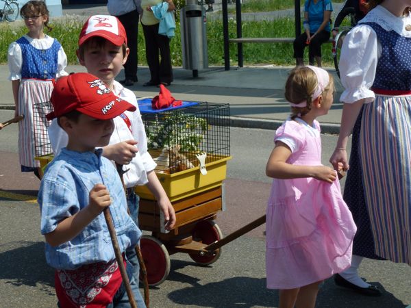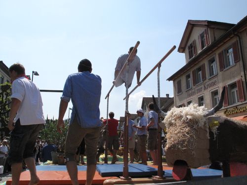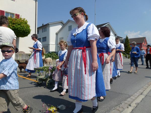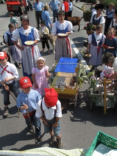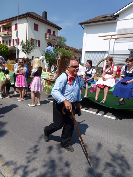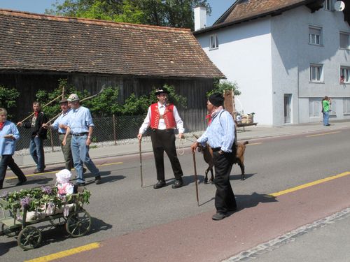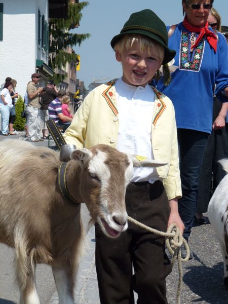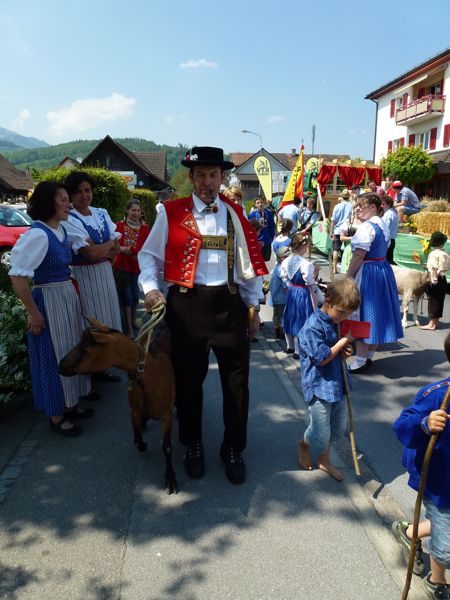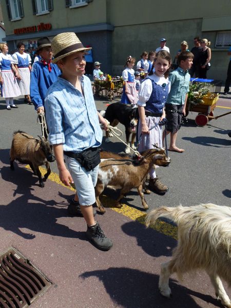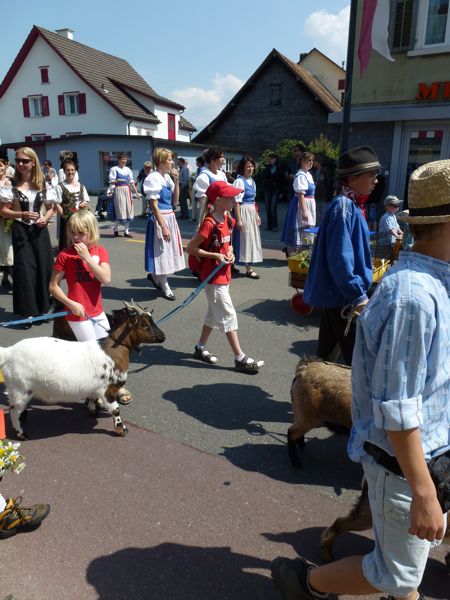 Fast alles was man an einem richtigen Alpaufzug zu sehen bekommt, konnte man auch am Eierlesefest bestaunen. Junge knackige Sennen, gut gelaunte Dirndel, Käser, Geissenpeter, Heidis, ... alles war mit von der Partie. Natürlich gehören auf eine Alp auch viele Tiere. Auch diese konnte man an diesem Fest selbstversändlich anschauen. Da gab es Hunde, Ziegen, Geissen und sogar Hühner welche den Weg von der Bahnhofstrasse bis zum Burgwies unter die Pfoten, Klauen und Zehen nahmen.
