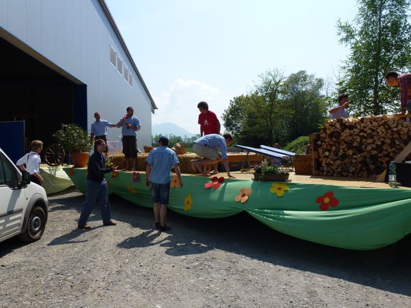 Darum ging es kurz vor Schluss des Umzugs direkt weiter zur Demontage. Nach einer knappen Stunde war alles demontiert und man begab sich zurück auf den Festplatz um mit der Dorfbevölkerung anzustossen.