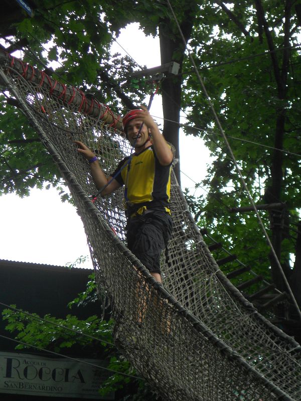 In Bellinzona angekommen wurde zuerst die Jugendherberge bezogen; anschliessend ging es – von nun an mit Hut – mit dem Zug nach Cordola. Dort stand nach dem Mittagessen ein Seilpark auf dem Programm, wo man sich auf unterschiedlichen Routen von Baum zu Baum balancieren bzw. angeln konnte.