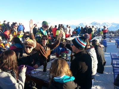 Nach einer problemlosen Fahrt nach Davos und dem Entladen des Gepäcks ging es mit der Bahn direkt ins Skigebiet. Dort konnten bei strahlend blauem Himmel die ersten Schwünge im Schnee gezogen werden. Schnell hatten jedoch die ersten genug vom Skifahren und machten es sich in der Jatzhütte gemütlich. Spätestens zur Mittagszeit waren auch die letzten KTV'ler in der Jatzhütte und so verbrachte man einen gemütlichen Nachmittag in der Bündner Höhenluft.