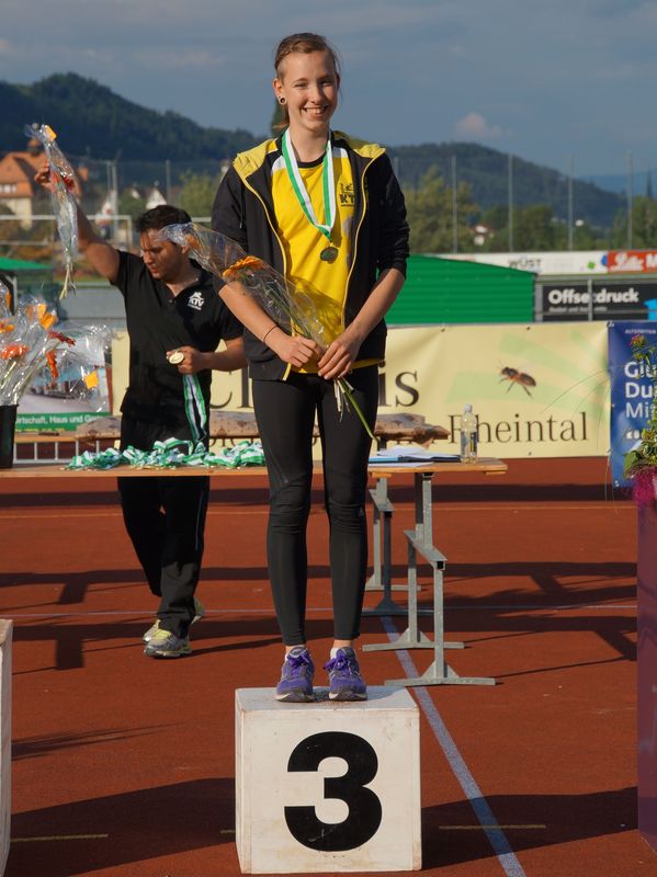 Den Damen lief es an diesem Tag etwas besser. Auch sie starteten mit einem akzeptablen 100m in den Wettkampftag. Danach kamen die Disziplinen von Rebecca Ammann. Sie zeigte bei Kugelstossen/ Hoch- und Weitsprung ihr Können und landete 3 Podestplätze!!!