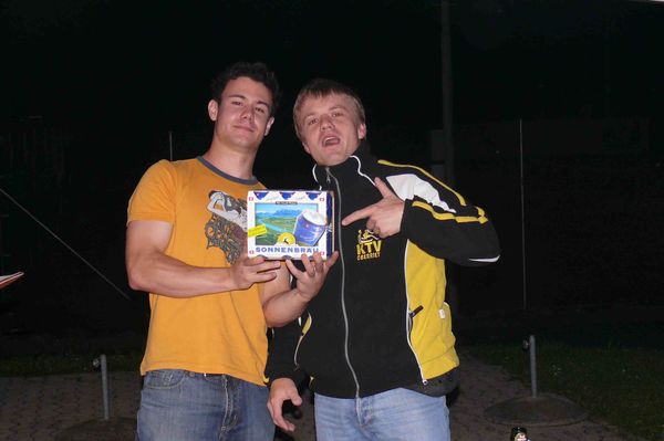 Nach dem Aufräumen und der verdienten Dusche eröffnete unser Schiedsrichter Samu kurz nach 22.00 Uhr die Rangverkündigung. Auf Preise durften sich dabei die Disziplinensieger sowie die Gesamtsieger freuen. Wie es der Zufall wollte, verteilten sich die Preise mehr oder weniger fair auf die einzelnen Teams, so dass am Schluss bloss zwei bedauernswerte Athleten ohne Trophäe nach Hause gehen mussten. (Die Bilder der glücklichen Sieger findest du unter "Bildergalerien")