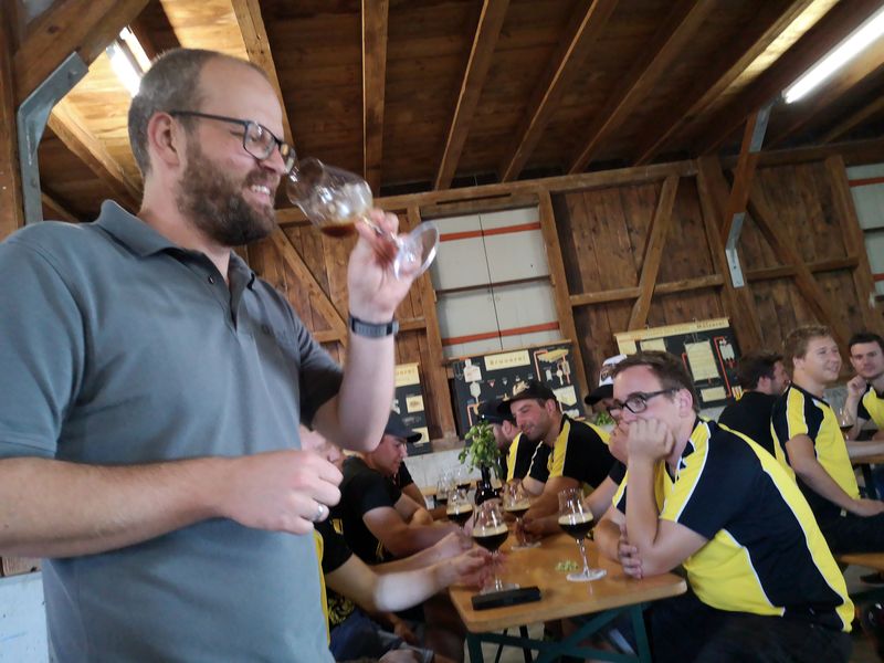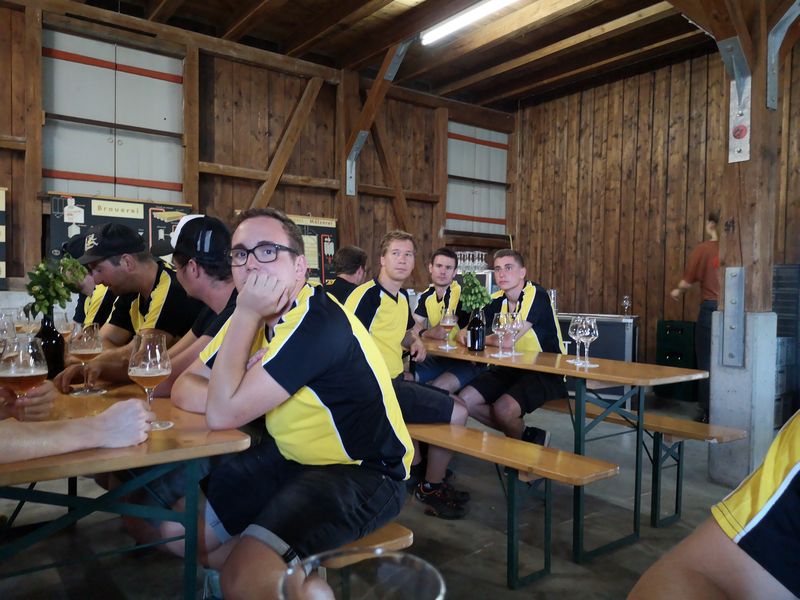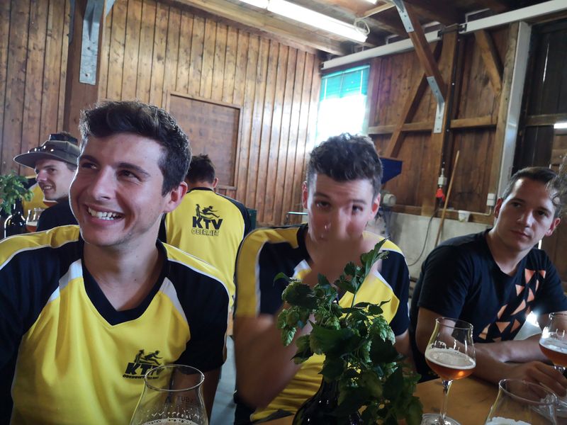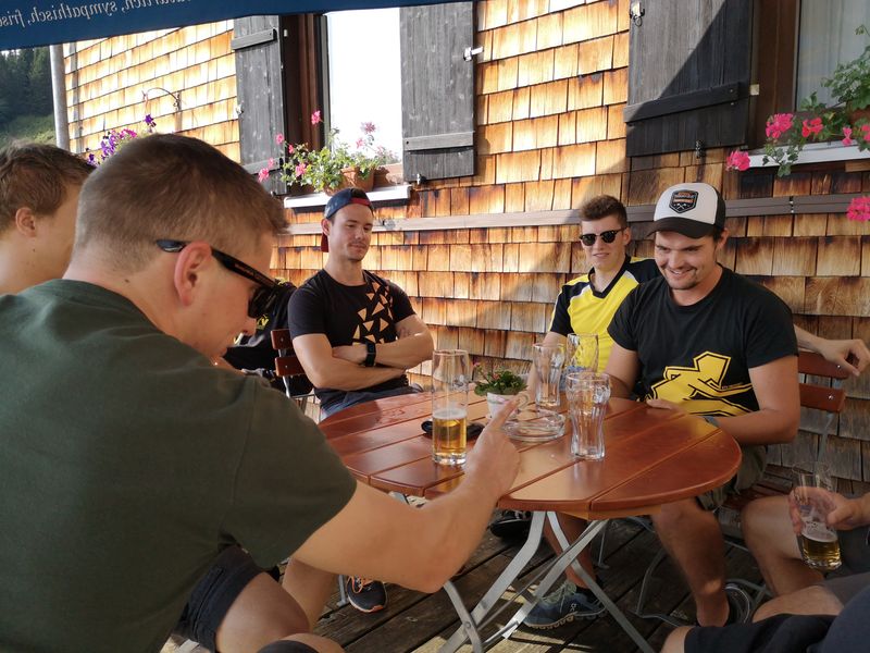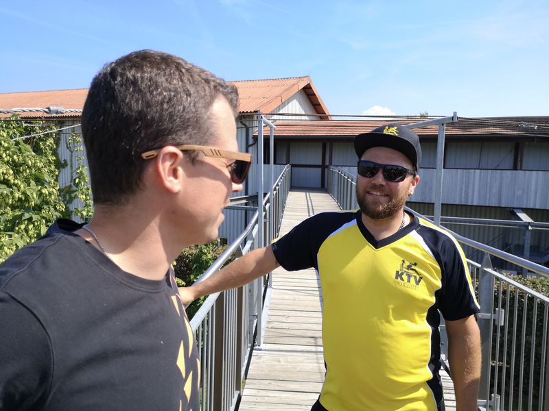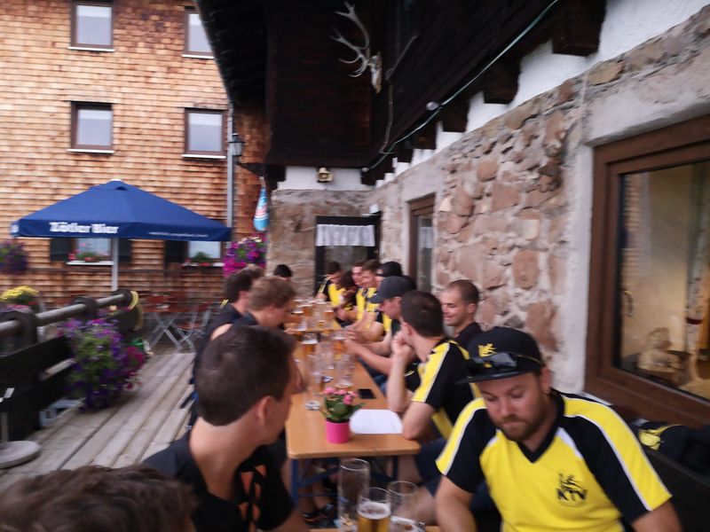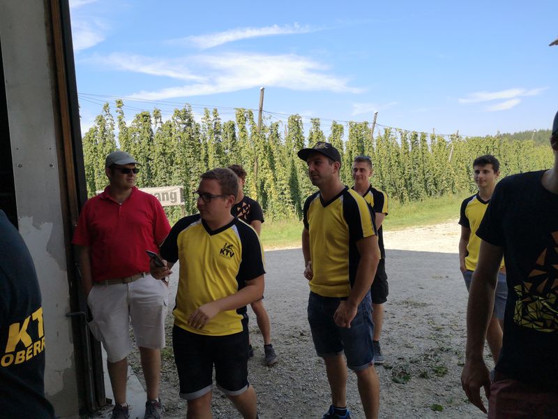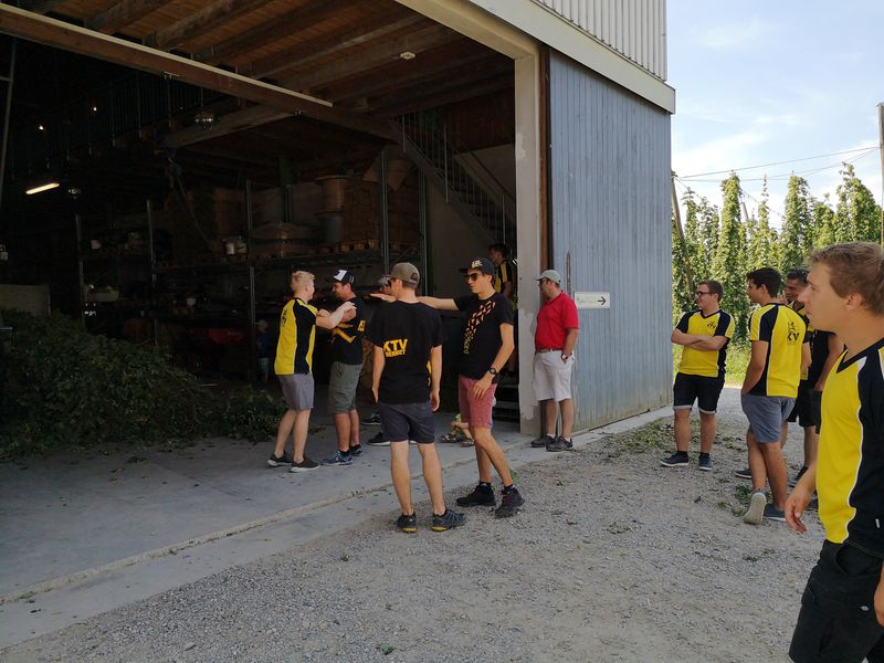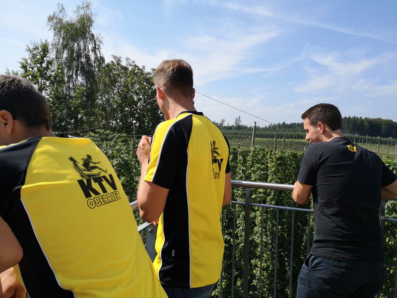 Nach dem ersten Kaffee machte sich die Gruppe auf den Weg Richtung Altenrhein. Dort wartete ein fachkundiger Mitarbeiter des Flughafens auf die Turner und zeigte ihnen in einer rund 1,5 stündigen Führung die Flughafenanlage. Noch vor dem Mittag ging es via Bregenz weiter nach Tettnang. Im Hopfengut N°20 durften sich die Sportler auf ein reichliches Mittagessen freuen. Der nächste Programmpunkt war die Besichtigung des Hopfenguts. Der fachkundige Hopfenbauer verstand es, die Gruppe mit Sprüchen und Wissenswertes über den Hopfenbau und deren Ernte bei Laune zu halten. Was wäre ein Hopfengut, welches nicht sein eigenes Bier braut? Die KTV-ler konnten 3 verschiedene Spezialbiere des Hopfenguts verköstigen. Nach der sehr interessanten Führung durfte natürlich der Besuch des Biergartens nicht fehlen. Mit Kleinbus und Privatautos ging es dann weiter nach Bolsterlang im Oberallgäu. Die Hörnerbahn brachte die Gruppe zum Restaurant Hörnerhaus, wo das Nachtquartier aufgeschlagen wurde. Bei bestem Spätsommerwetter genossen die Turner den Abend auf der Sonnenterrasse des Gasthauses. Eine Runde „Molotow“ oder das obligate Singen durfte natürlich nicht fehlen.