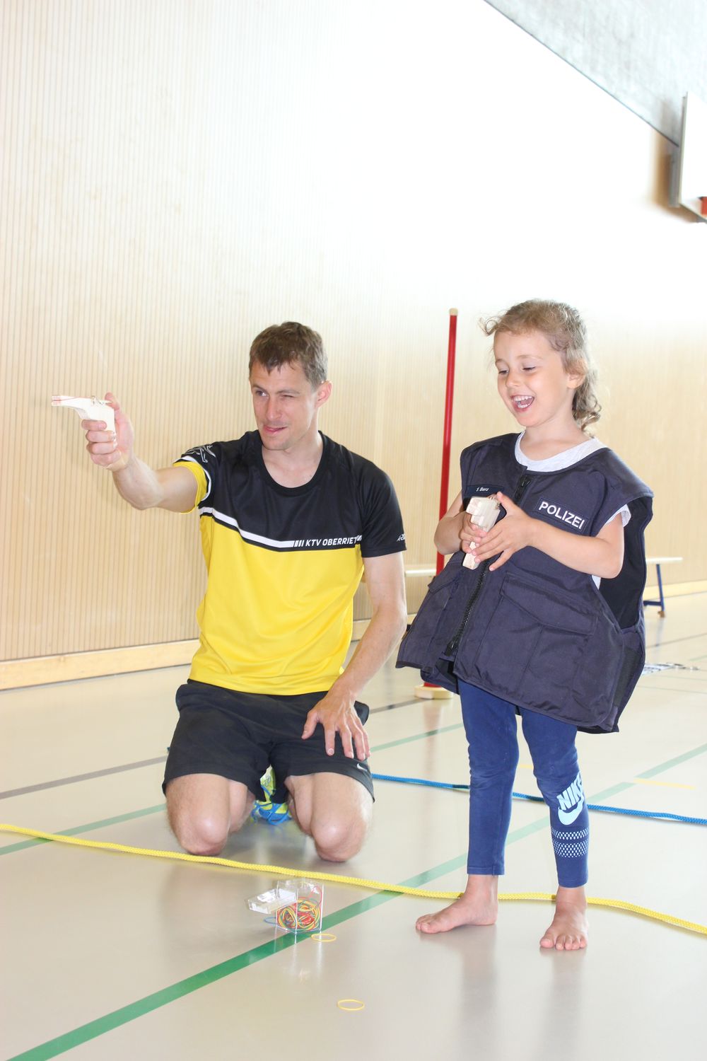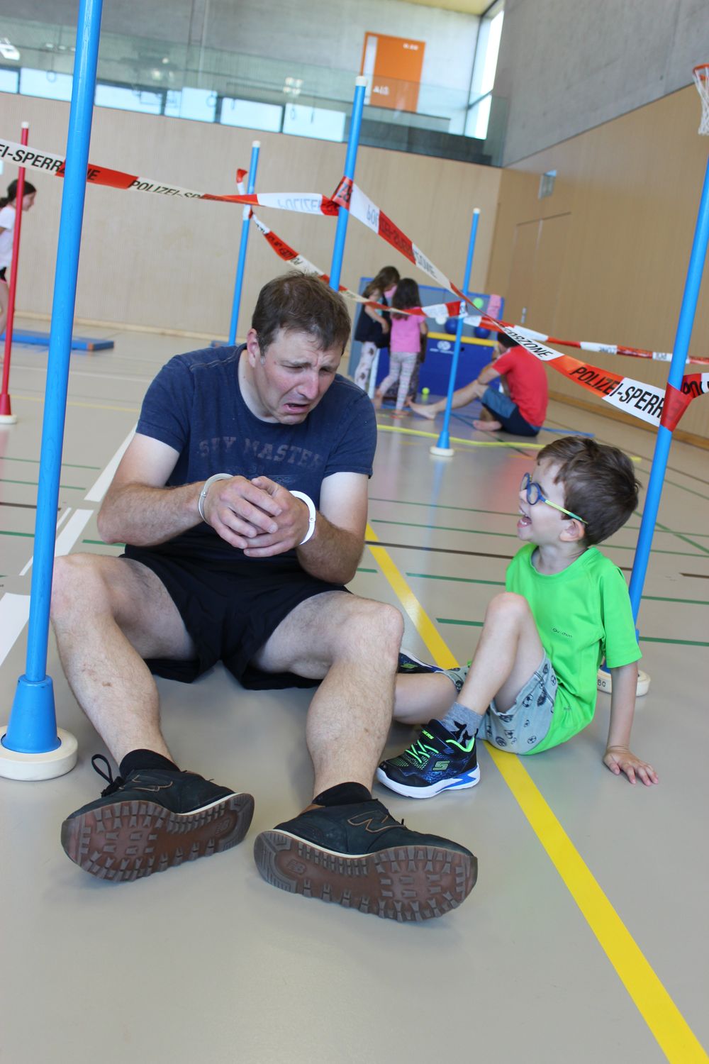 Die Kinder durften mit den Vätern die Polizeischule absolvieren. In einem Parcours mit verschiedenen Posten zum Thema Polizei, konnten sich die Kinder ihren Polizei- Ausweis verdienen.