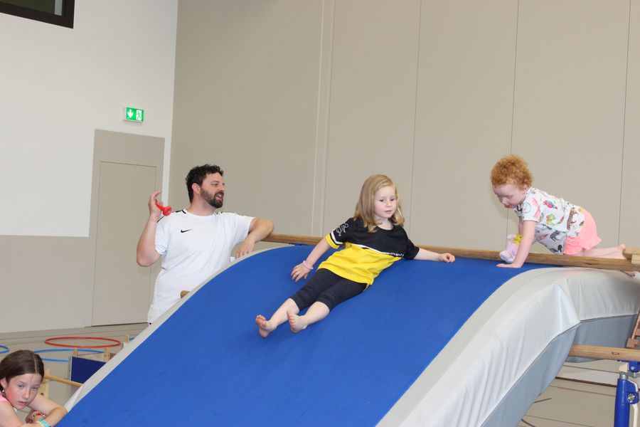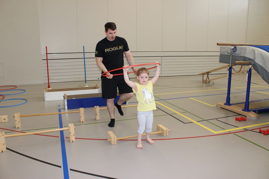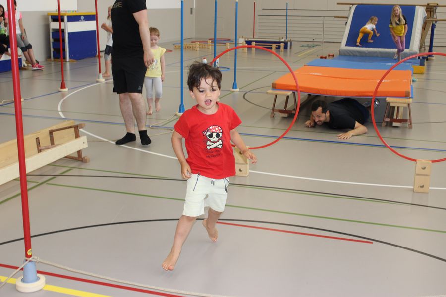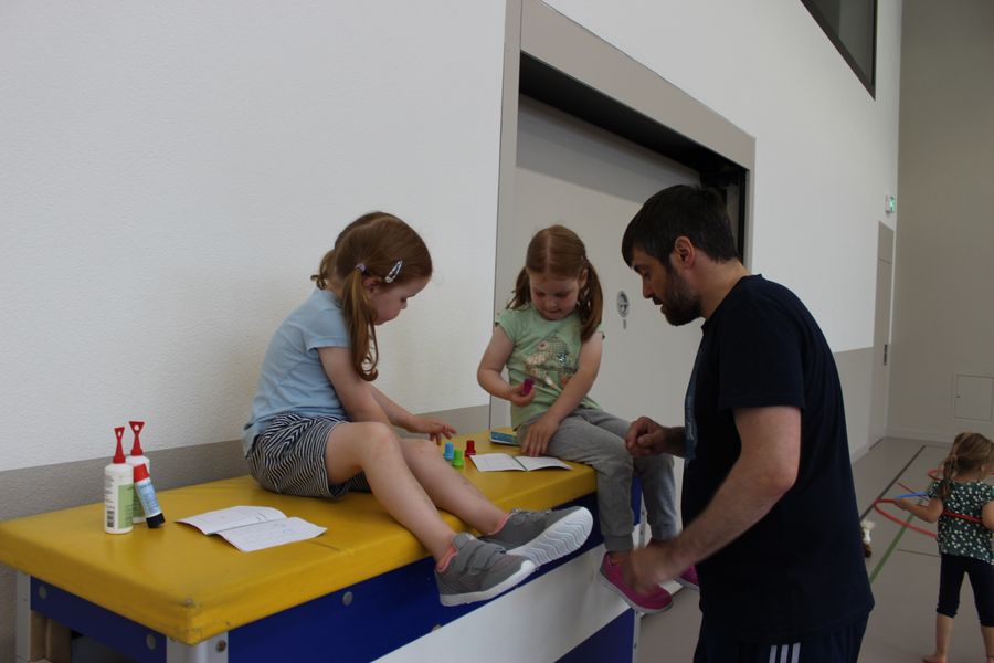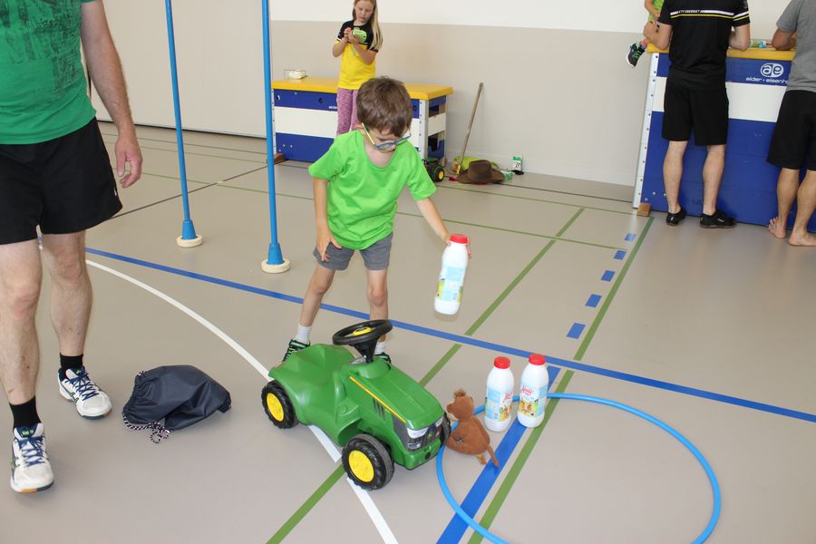 Wie beim jeweiligen Muki-Turnen wurde auch der Morgen in zwei Gruppen gestaltet. Die Väter wie auch die Kinder waren motiviert dabei und durften am Schluss eine Medaille als ausgebildeter Bauer bzw Bäuerin entgegennehmen.