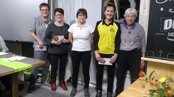 5 Frauen können ohne die Frauenriege fast nicht leben. Sie fehlten durchs Jahr höchstens 5 Mal als Anwekennung erhielten sie einen Gutschein.