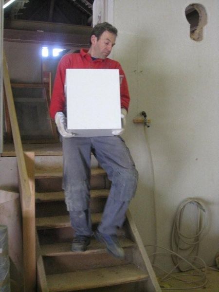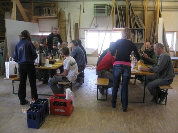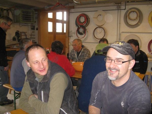 Tatkräftig wurden Holzplatten und Maschinen gezügelt, Leitungen demontiert und "Staub" geschluckt! Vielen Dank nachträglich nochmals für die feine Bewirtung und die wunderschöne Jacke.