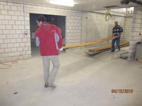 Tatkräftig wurden Holzplatten, Maschinen und Werkzeuge vom alten SBB-Schuppen in den schönen Neubau gezügelt. Ebenfalls wurde geschweisst, geschlossert, gemalt, gelacht und dieses Mal eher wenig "Staub" geschluckt.