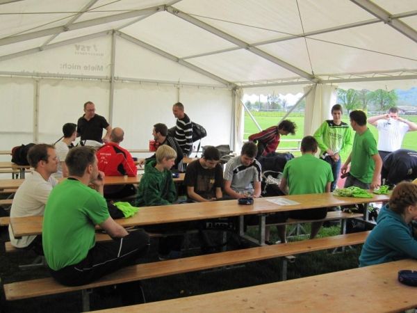 Bei zum Glück trockenem Wetter jedoch mit relativ starkem Föhn fanden faire und interessante Faustballspiele statt. Für Spieler und Zuschauer hielt die organisierende Männerriege ihre leistungsfähige Festwirtschaft bereit. Sehr feine Steak und Würste vom Metzger Zünd, diverse gute Kuchen sowie Torten und natürlich Getränke aller Art wurden rege konsumiert.
