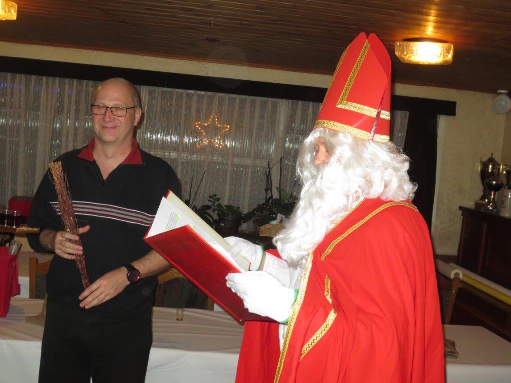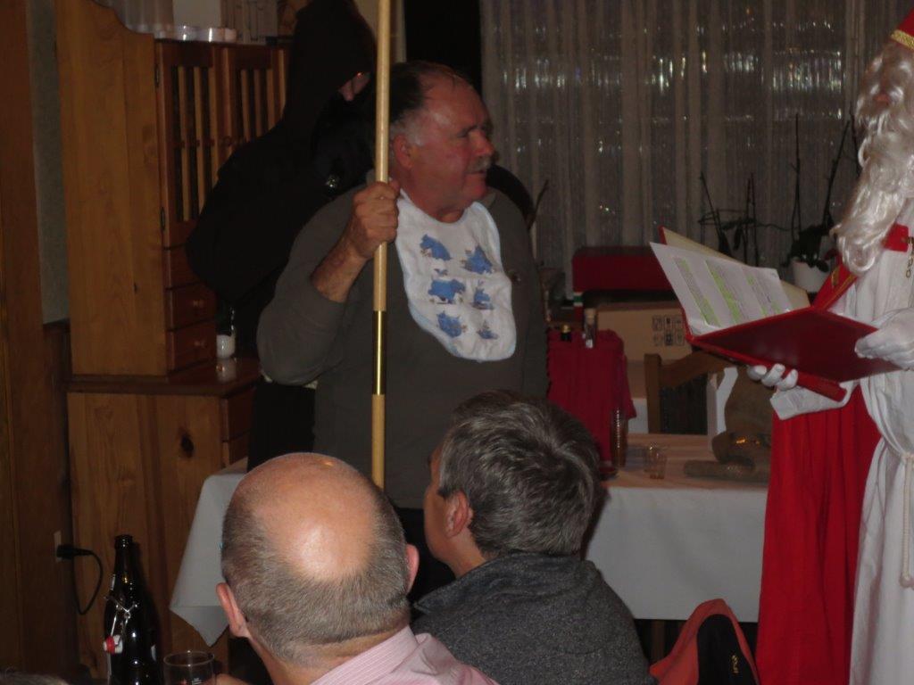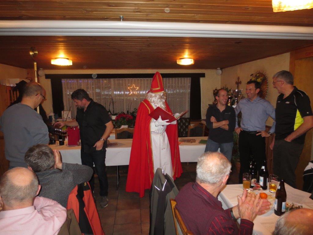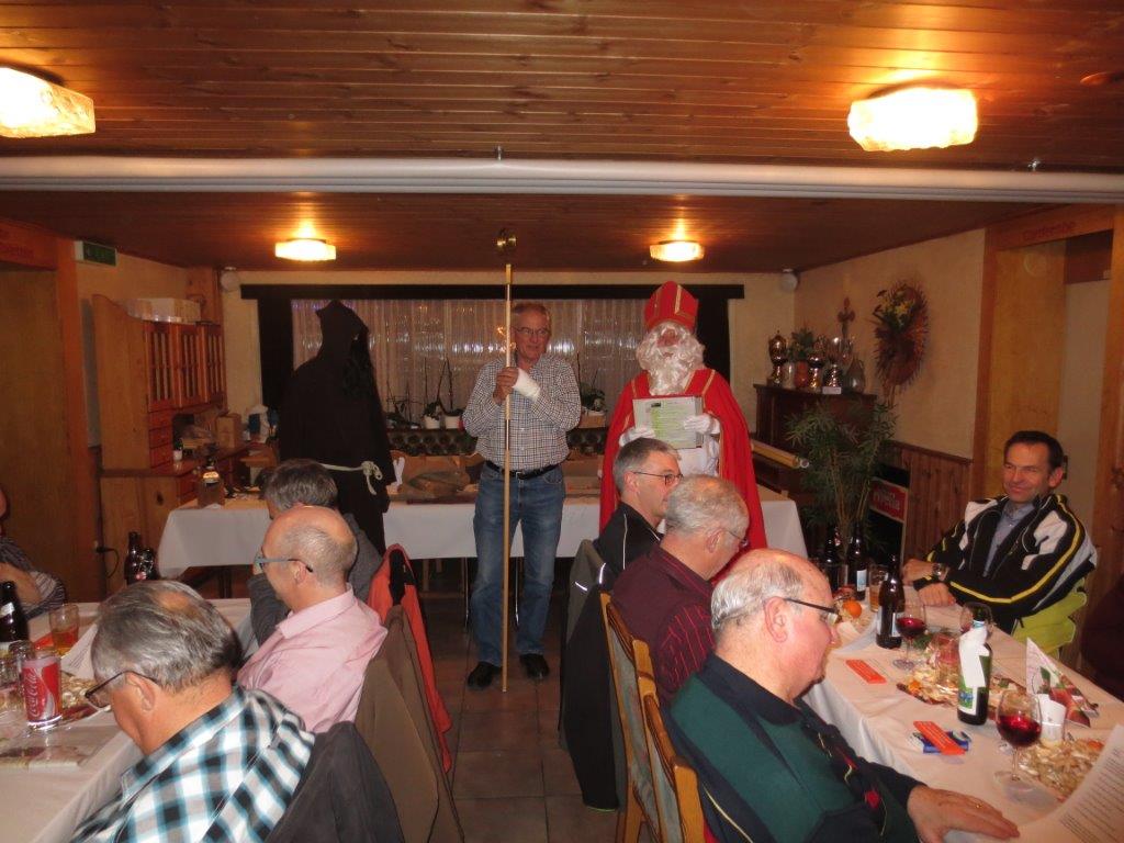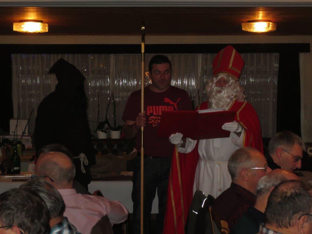 Vergangenen Donnerstagabend, 04.12.2014, besuchten der Samiklaus und der Schmutzli die Männerriege im Rest. Krone in Oberriet bei Trudi im Kronensaal. Nach dem feinen Znacht (Bratwurst mit Pommes Frites) wusste der Samiklaus „Mäk“ einiges an Lob und Tadel über die 42 anwesenden Mitglieder zu berichten.