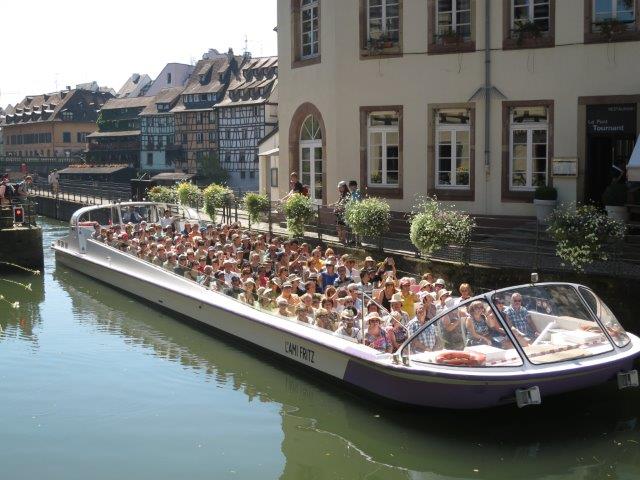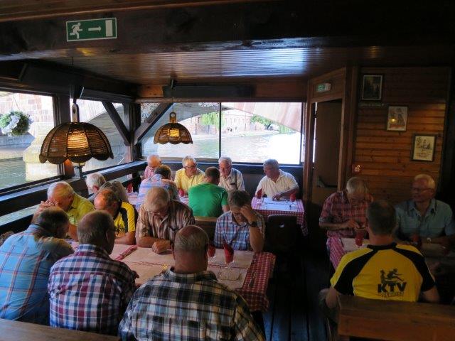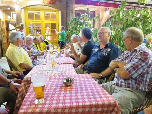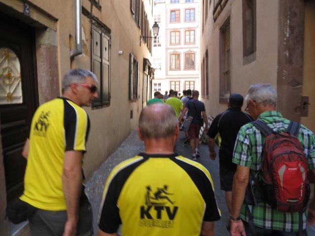 Mit dem Tram fuhren die Teilnehmer ins Stadtzentrum und bezogen dort die Doppelzimmer im Hôtel Le Bristol. Kurz darauf liessen sich die Turner einen ausgezeichneten Elsässer Flammkuchen am Quai Finkwiller beim Mittagessen im Bistrot des Copains schmecken. Danach folgte eine sehr interessante Stadtbesichtigung von Strasbourg während einer Stunde auf dem klimatisierten Schiff (Batorama). Nach einem währschaften Nachtessen im Restaurant Au Pont Saint Martin in Petite France pflegten die KTV’ler die Kameradschaft in den gemütlichen Gassen und Plätzen rund um die Cathédrale von Strasbourg bis spät in die Nacht.