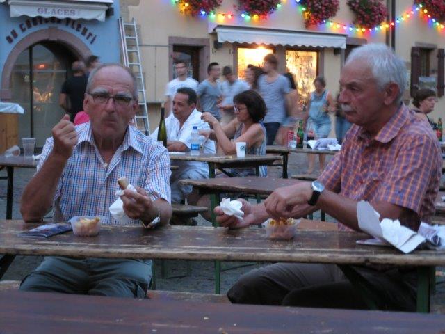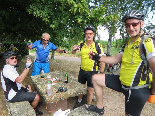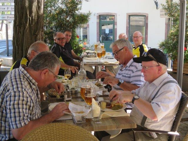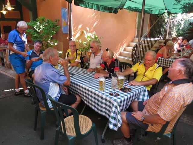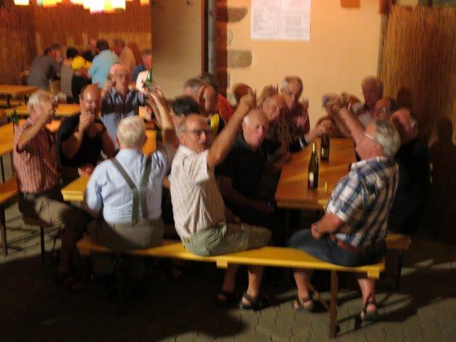 Am Sonntag nach dem stärkenden Frühstück führte die Tramfahrt wieder raus aus Strasbourg zu den parkierten drei Fahrzeugen. Anschliessend teilten sich die 20 Männerriegler in zwei Gruppen auf. Die „Wanderer“ überführten die Autos nach Colmar und besichtigten die schöne Umgebung an der Weinstrasse mit diversen Punkten und Sehenswürdigkeiten. Die anspruchsvolle Tour der „Velofahrer“ startete um 08.45 Uhr ausserhalb von Strasbourg entlang von idyllischen Kanälen sowie der beeindruckenden Weinstrasse via Obernai und Barr und endete nach genau 90 km und um 17.00 Uhr in Beblenheim. Danach bezogen alle die Doppelzimmer im Hôtel Roi Soleil in Colmar und liessen den Sonntagabend gemütlich am Weinfest in Eguisheim ausklingen.