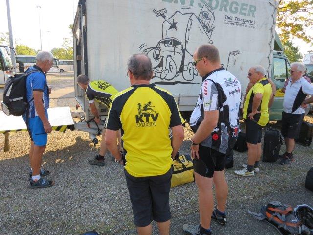 Am Samstagmorgen, 27. August, besammelten sich 20 Männerriegler des KTV Oberriet beim Friedhofparkplatz. Gemeinsam ging es auf den 3-tägigen Ausflug ins schöne Elsass. Mit 1 Kleinbus, 1 Personenwagen und 1 Lieferwagen für den Velotransport führte die Fahrt via Basel bis nach Strasbourg.