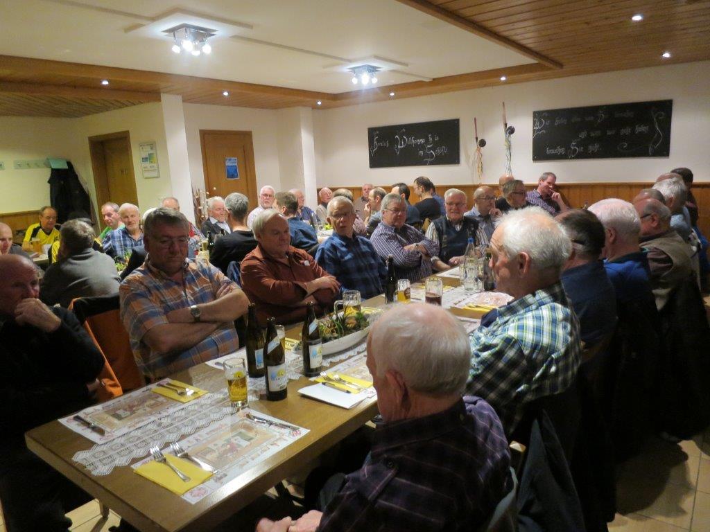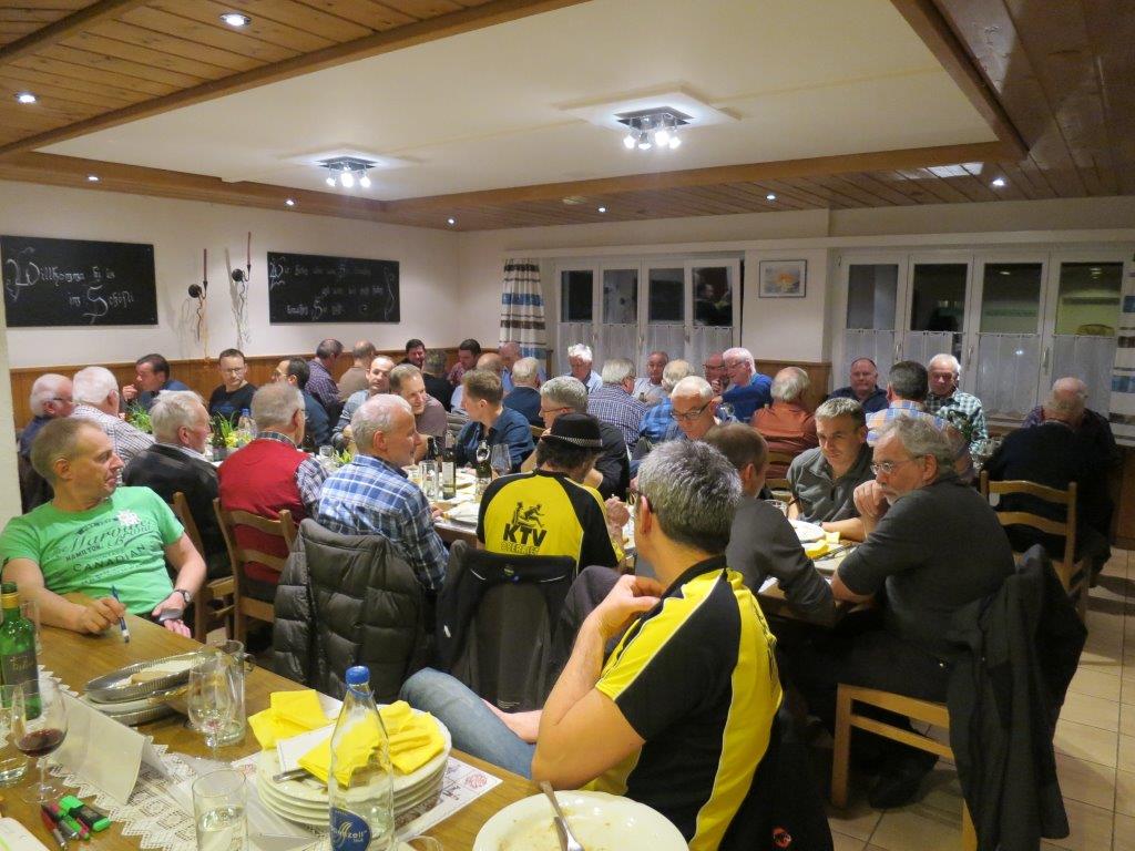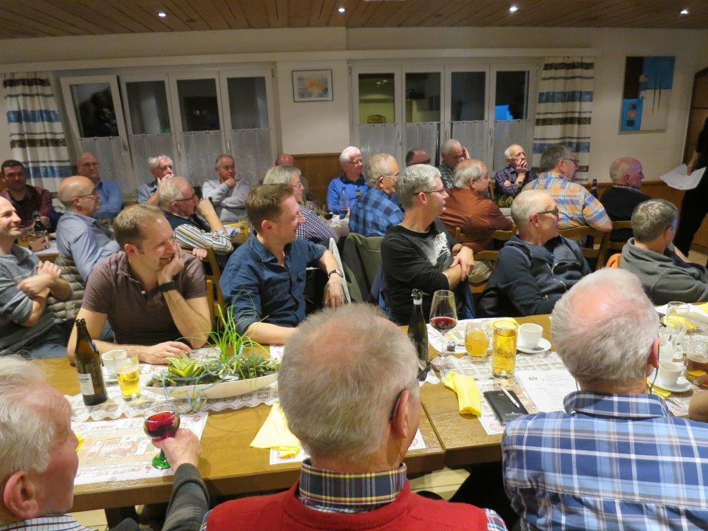 Am Freitag, 19.01.2018, fand die 68. HV der Männerriege im Rest. Schäfli im Moos statt. Um 19.00 Uhr wurde zuerst das sehr feine Nachtessen (Gemischer Salat, Schweinsbraten vom Nierstück, Nudeln und Pommes-Frites, Gemüse) genossen. Emil Merz begrüsste um 20.35 Uhr bei seiner 6. HV als Präsident 44 anwesende Mitglieder. 11 Männerriegler hatten sich für die HV entschuldigt. Mit einer Foto-Präsentation hielt er Jahresrückblick 2017 und führte durch die 10 Traktanden.