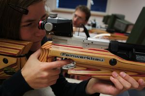 Zuerst trafen sich alle LA Mitglieder beim Schützenstand Oberriet. Dort versuchten sich Gross und Klein beim 10m Luftgewehr-Schiessen. Für die meisten eine sehr ungewohnte Disziplin.