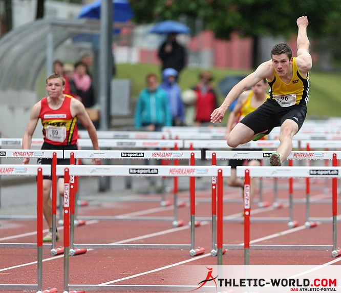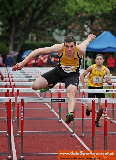Für Tobias war dies bereits der zweite Zehnkampf in seiner jungen Karriere. Von den zehn Disziplinen, die er an diesem Wochenende absolvierte, gelangen ihm 6 neue persönliche Bestleistungen! – Das harte Training über den Winter hat sich wohl ausgezahlt J Er startete mit dem 100m und zeigte dort mit 12.37sek ein solide Leistung – wenn man bedenkt, dass er -3.9 Gegenwind hatte! Der Weitsprung lief mit 5.70m nicht gerade nach seinen Erwartungen, dafür gelang ihm im Kugelstossen mit 12.07m die zweit beste Weite seiner Kategorie! Im Hochsprung meisterte er 1.65m und die abschliessenden 400m vom ersten Tag sprang er in 56.20sek. Am Sonntag stand 110mHürden als erste Disziplin auf dem Programm, er sprang den Gegnern seiner Serie wortwörtlich davon und erreichte auch hier die zweitbeste Zeit der ganzen Kategorie mit 15.63sek. Mit 26.22m im Diskus und 3.20m im Stabhochsprung, gelangen ihm zwei weitere Pb’s. Den Speer warf er auf 39.41m - hier erhoffte er sich ein bisschen mehr... Im abschliessenden 1500m Rennen ging es dann um die Wurst! Er wusste, nur mit einer schnellen Zeit, konnte er sich den zweiten Rang ergattern! Er gab nochmal alles und lief denn 1500m rund 17sek schneller als in seinem letzten Zehnkampf! Das Schlussergebnis kann sich also sehen lassen mit 5392Punkte wurde er bei den U18 sehr gute 2ter!