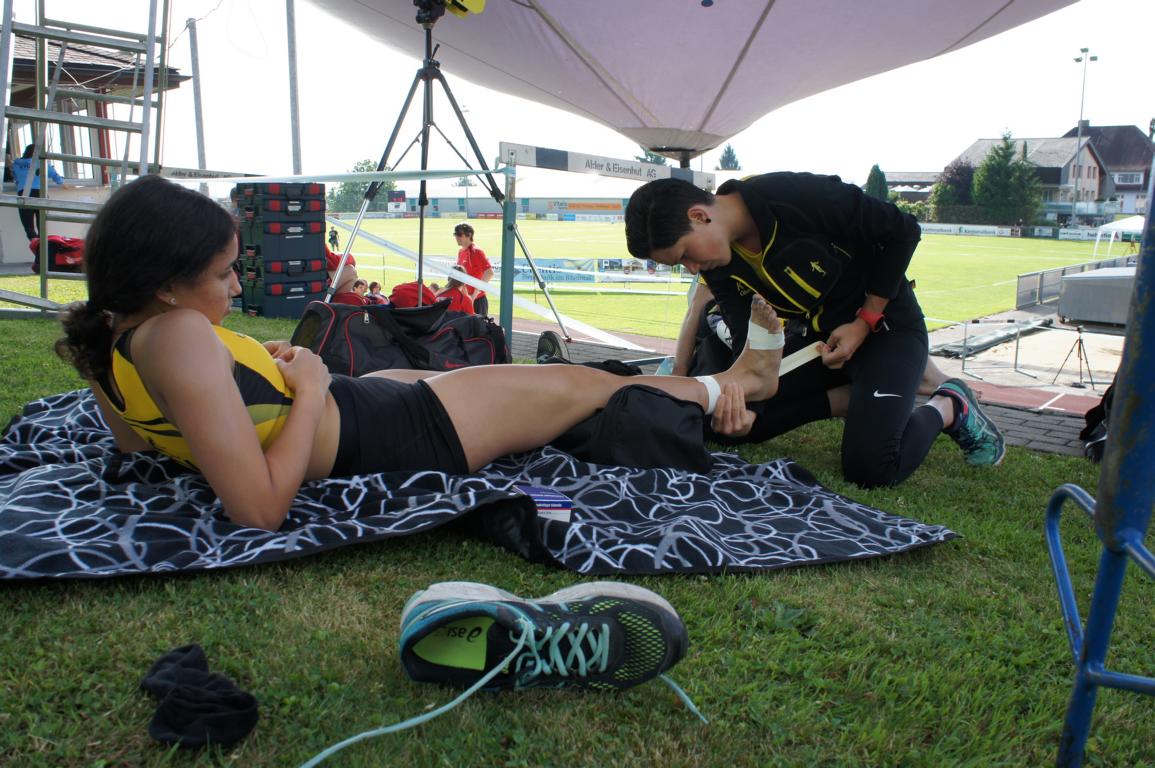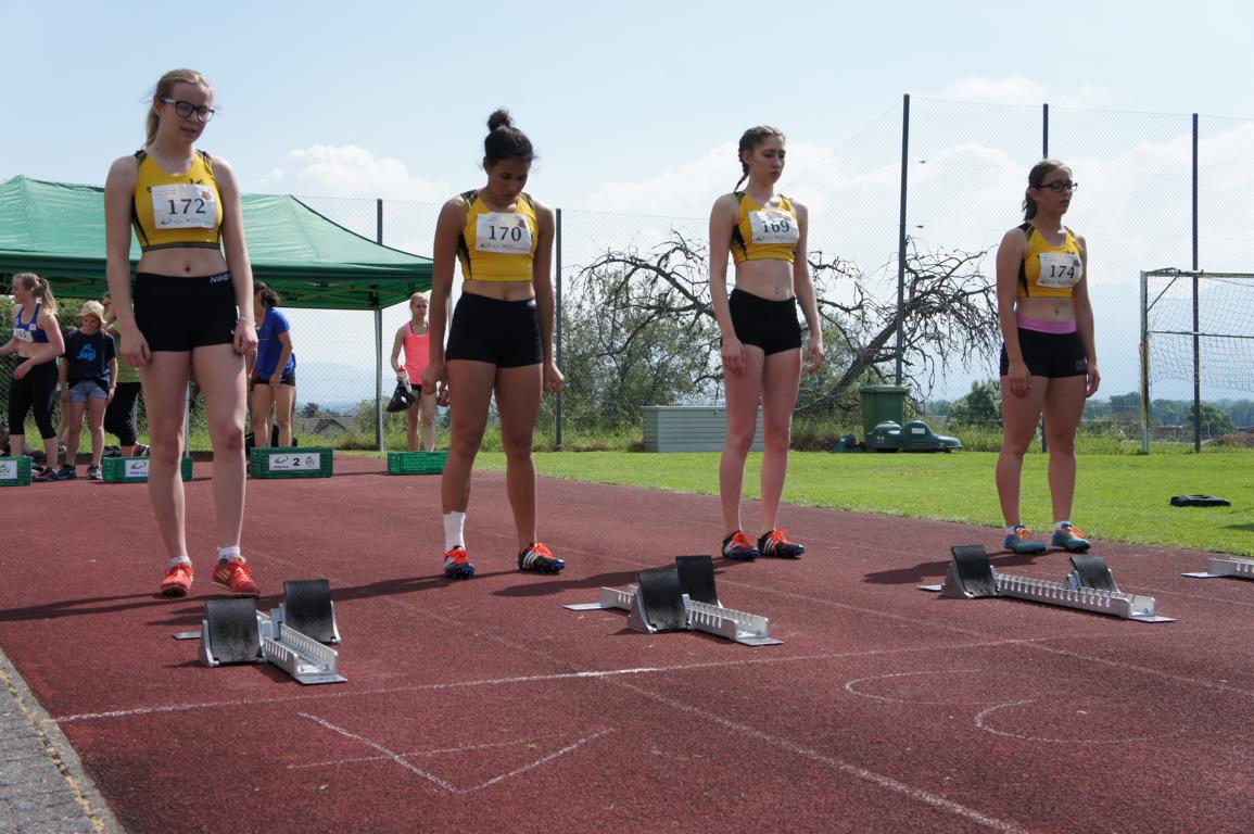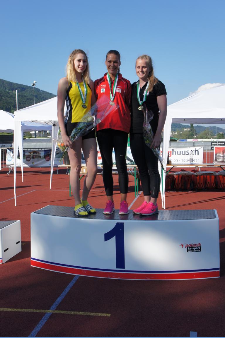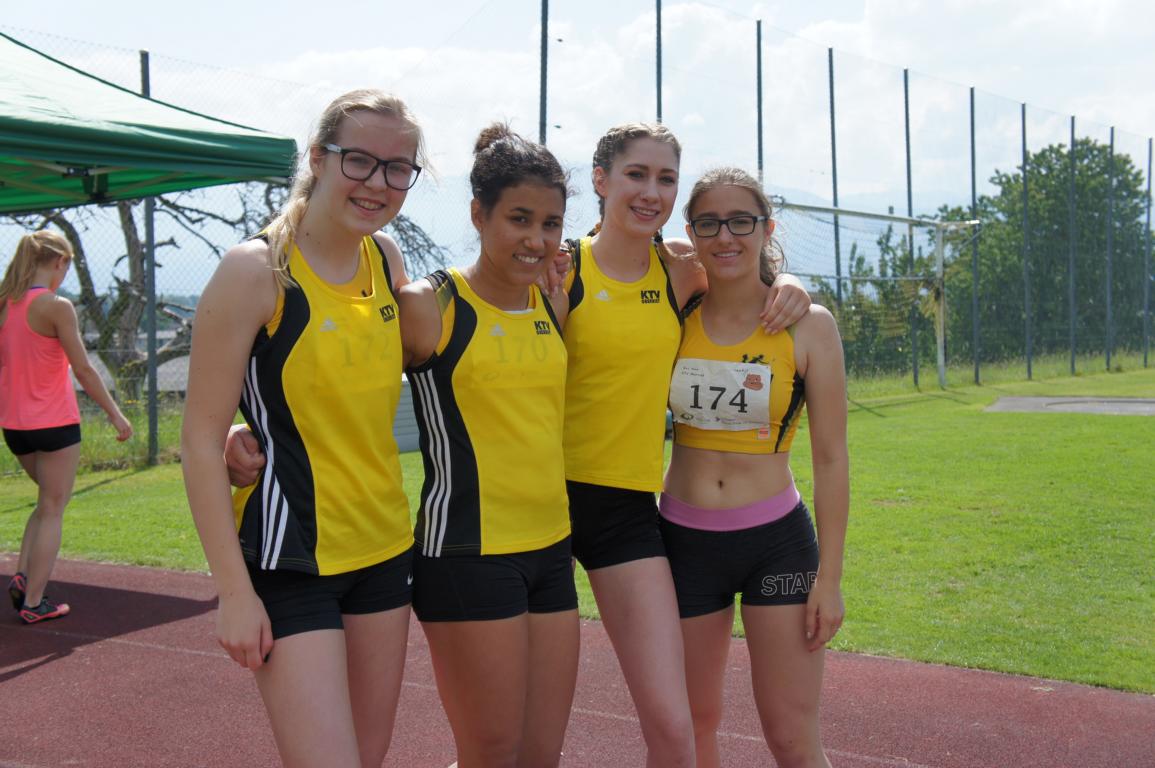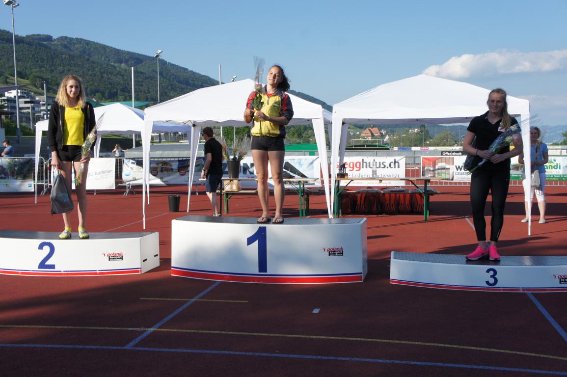 Das Damenteam griff um 10:30 Uhr ins Wettkampf Geschehen ein. Mit Zeiten um die 13 Sekunden, oder wie im Fall von Alessia Omlin sogar drunter, erwischten sie einen guten Start in den Wettkampf. Im Hochsprung, der als nächste Disziplin auf dem Programm stand, wusste vor allem Sarina Ammann zu überzeugen. Mit einer Höhe von 1.66m (PB) erreichte sie Platz 2. Aber auch die anderen Athletinnen zeigten starke Leistungen. Im Weitsprung hatten die Springerinnen etwas mit dem Gegenwind zu kämpfen. So konnten die angestrebten Topweiten nicht ganz erreicht werden. Die erreichten Weiten können sich aber durchaus sehen lassen. Im anschliessenden Kugelstossen zeigte Rebecca Ammann, dass mit ihr immer noch zu rechnen ist. Und so konnte sie mit Platz 2 einen Podestplatz ergattern. Auch die anderen drei Athletinnen zeigten einen guten Wettkampf. Wie bei den Herren wird auch bei den Damen der Wettkampf mit einem Lauf auf dem Rasen abgeschlossen. Für die Damen ging es über 600m. Barbara Graf war über die zwei Platz Runden die schnellste unseres Damenteams die anderen drei Läuferinnen folgten aber dicht dahinter.